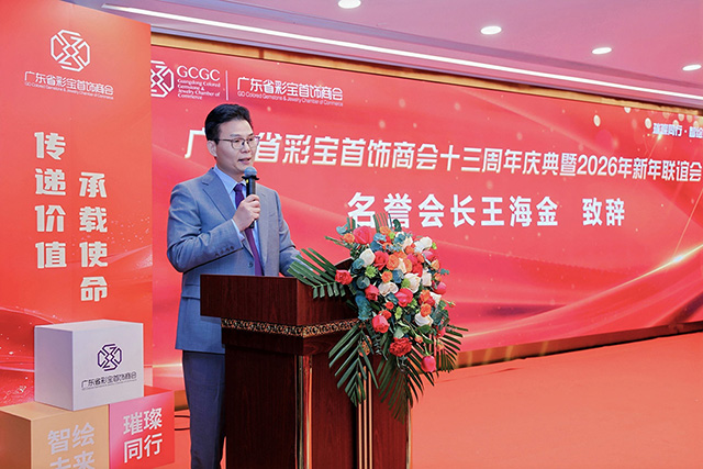 王海金会长在致辞中说站在第五届筹备换届的关键节点,作为第五届会长候选人,内心满怀荣幸,更深知责任重大。彩宝首饰行业,从来都与时代同频共振。当下,我们正处在波澜壮阔的新时代,国家电商规范化进程加速;珠宝税制阳光化稳步推进;AI数据智能化浪潮奔涌,为行业创新升级注入了全新的动力。变局与新机共生,谨向在座各位行业的精英乔楚,会长们,向每一位商会同仁,发出一份诚挚的倡议:让我们以换届为起点,秉持“团结一致、共享共创、实干共荣、兴业为公”的信念,携手并肩,再启新程!