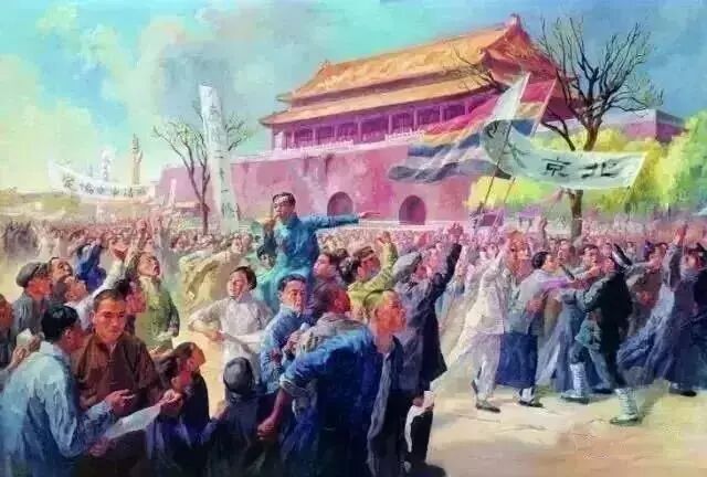 1919年1月“巴黎和会”决定将战败的德国在山东的特权转交给日本,消息传到国内,群情激愤。5月4日,3000多名北京爱国学生在天安门举行示威游行,掀起了全国规模的反帝爱国运动。这就是著名的五四爱国运动。五四运动标志着中国新民主主义革命的伟大开端,促进了马克思主义在中国的传播及其与工人运动相结合。