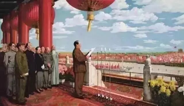 1949年10月1日中华人民共和国开国大典上,毛泽东在天安门城楼上宣读中央人民政府公告,宣告中华人民共和国成立,开辟了中国历史的新纪元,中国人民从此站起来了。每年的10月1日为中华人民共和国国庆日。