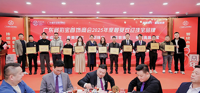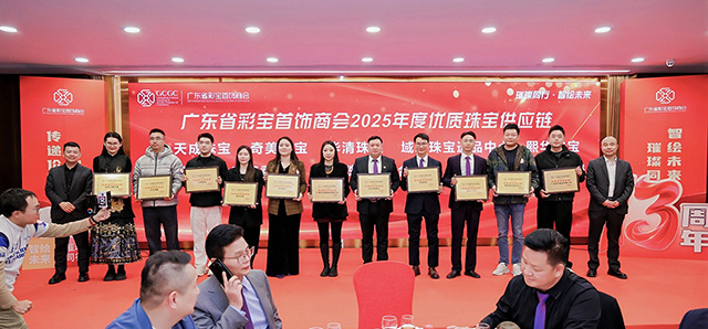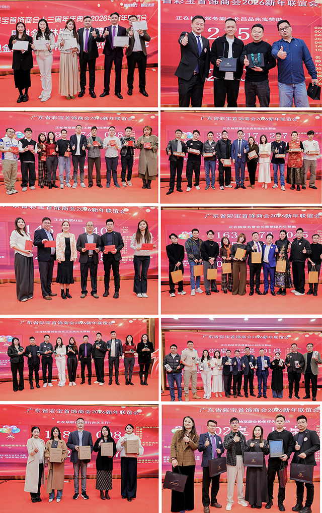 2026年1月8日晚,广东省彩宝首饰商会在广州迎宾馆举办了“璀璨同行·智绘未来”商会13周年庆典暨2026新年联谊会。当天邀请到了多位行业内的商协会会长及嘉宾,连同商会会员共250余人参加了庆典。